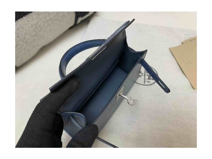 Hermès Mini Kelly II Ostrich Agate Blue x Palladium Hardware