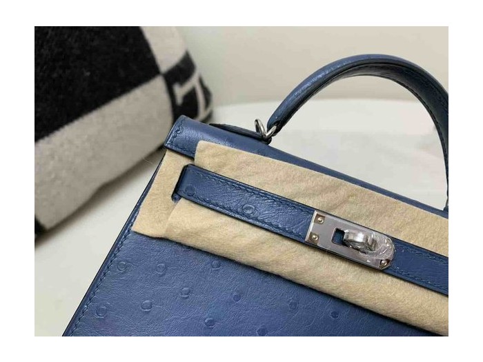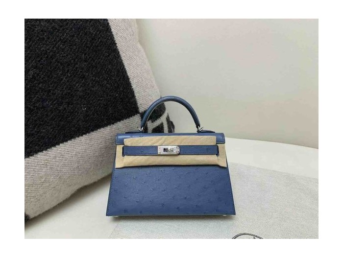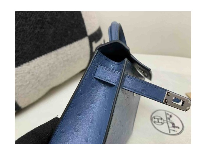 Hermès Mini Kelly II Ostrich Agate Blue x Palladium Hardware > Ostrich