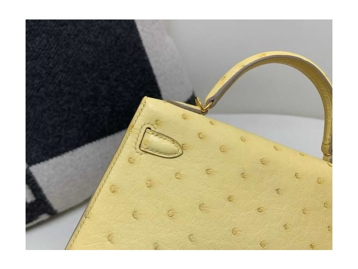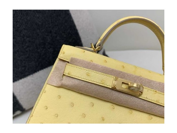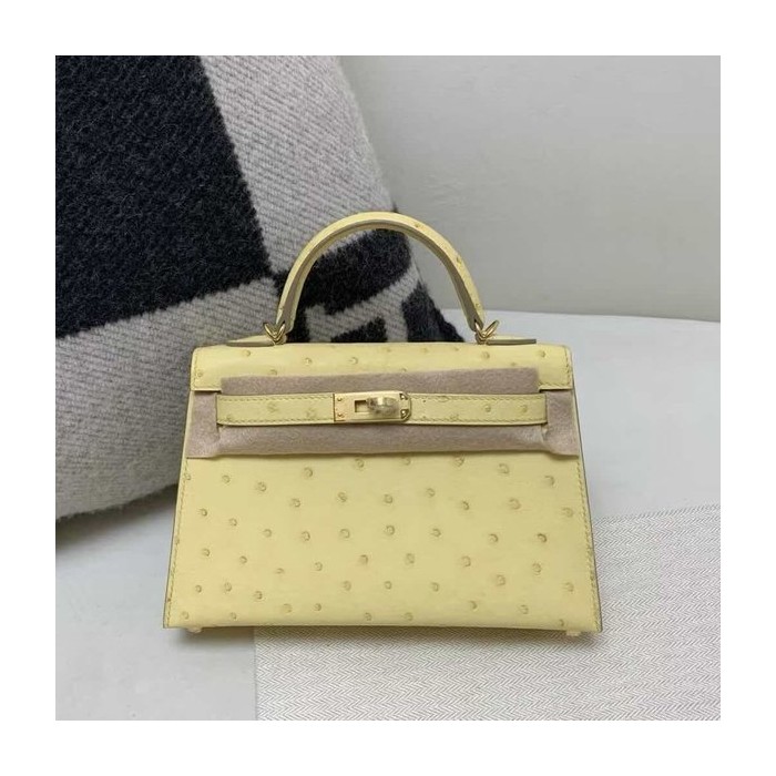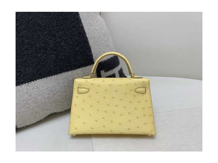 Hermès Kelly Mini II 20 Ostrich Jaune Poussin x Gold Hardware