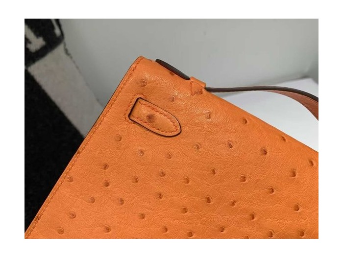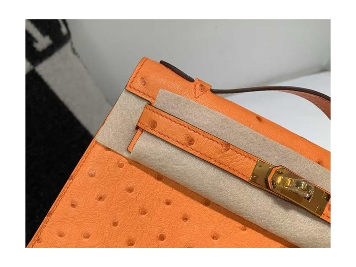 Hermès Mini Kelly I Ostrich Orange x Gold Hardware > Ostrich