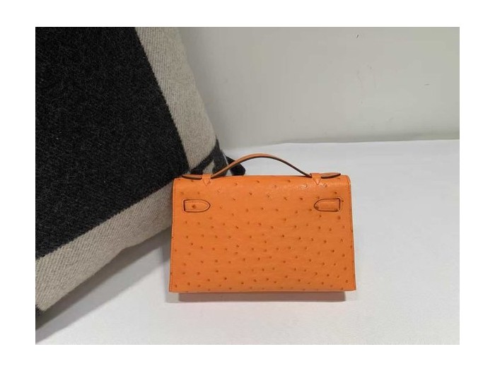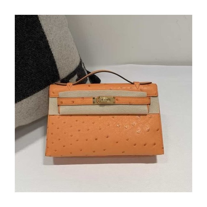 Hermès Mini Kelly I Ostrich Orange x Gold Hardware