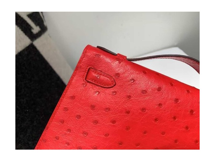 Hermès Mini Kelly I Ostrich Q5 Rouge Vif x Palladium Hardware > Ostrich