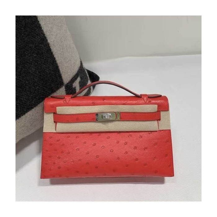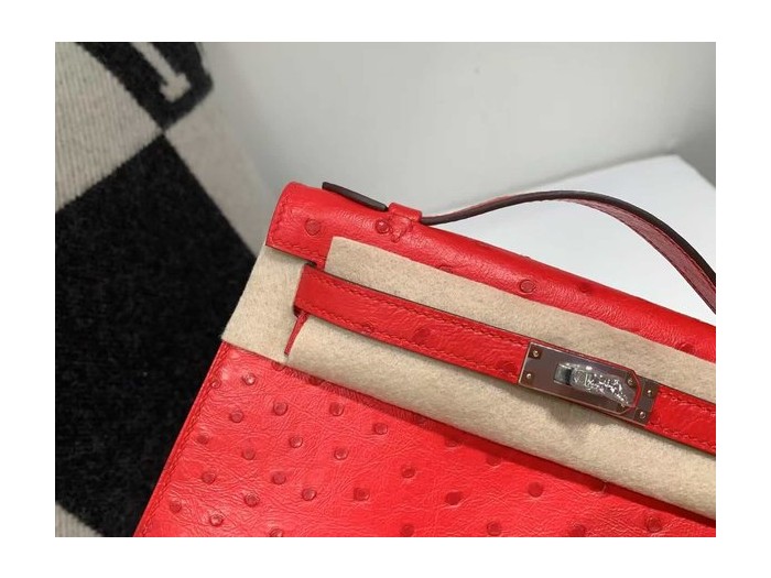 Hermès Mini Kelly I Ostrich Q5 Rouge Vif x Palladium Hardware