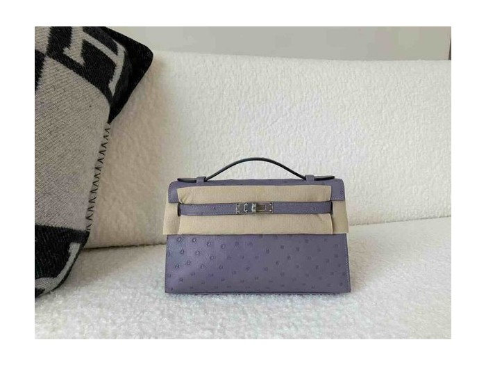 • Hermès Pochette Ostrich Lavender Purple x Palladium Hardware