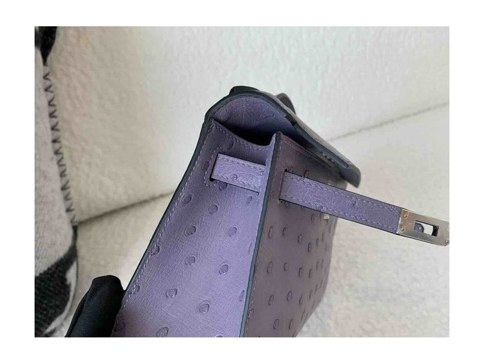 Hermès Pochette Ostrich Lavender Purple x Palladium Hardware