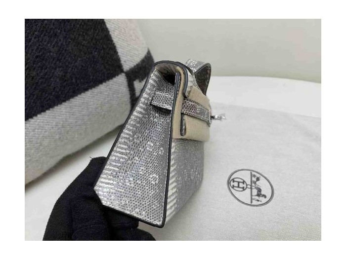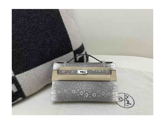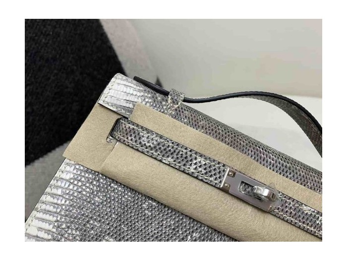 • Hermès Kelly Pochette Lizard Ombre x Palladium Hardware