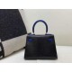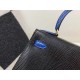 Hermès Mini Kelly 20 Big Lizard Noir with Sapphire Blue x Gold Hardware