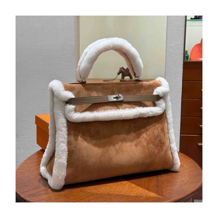 • Hermès Kelly 35 Teddy Suede & Shearling