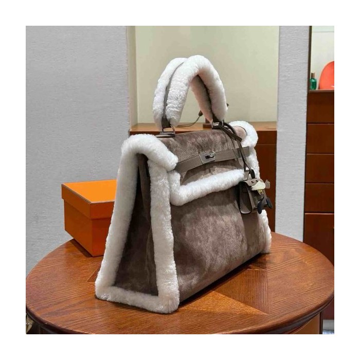 • Hermès Kelly 35 Teddy Suede & Shearling