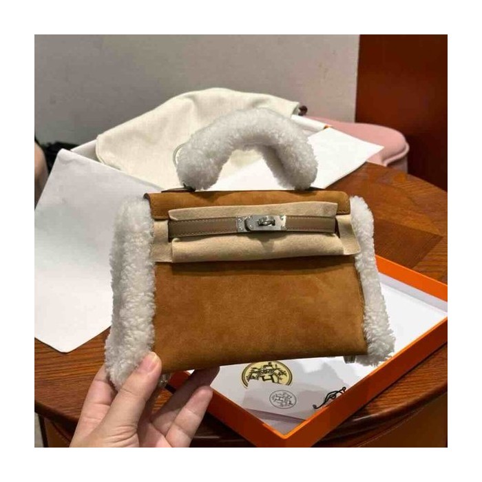 Hermès Mini Kelly II Teddy Suede & Shearling
