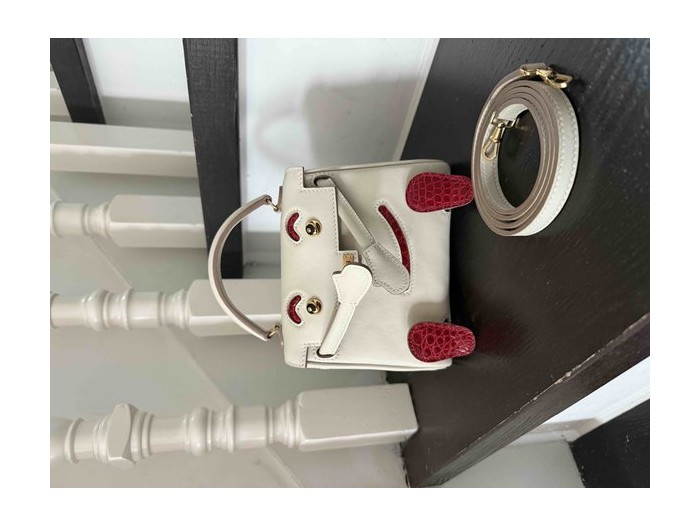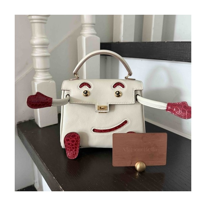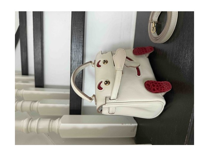 • Hermès Kelly Doll Craie Swift with Rouge H Alligator Details and Gold Hardware