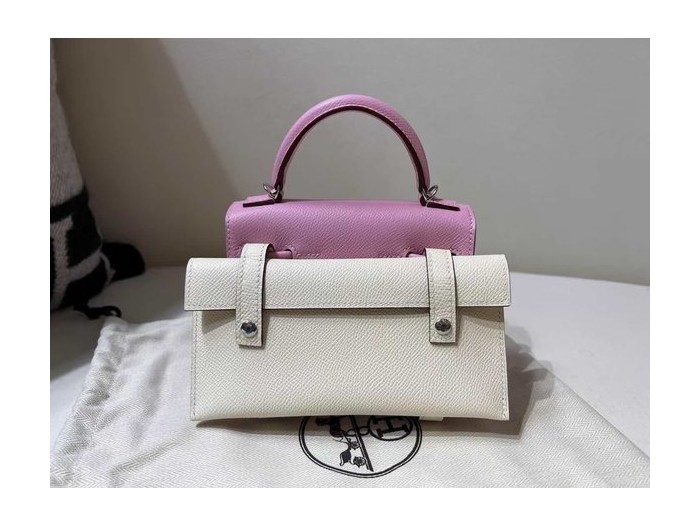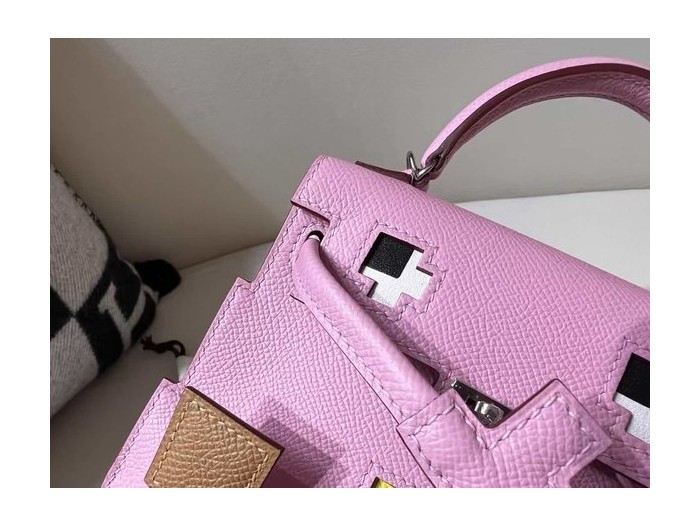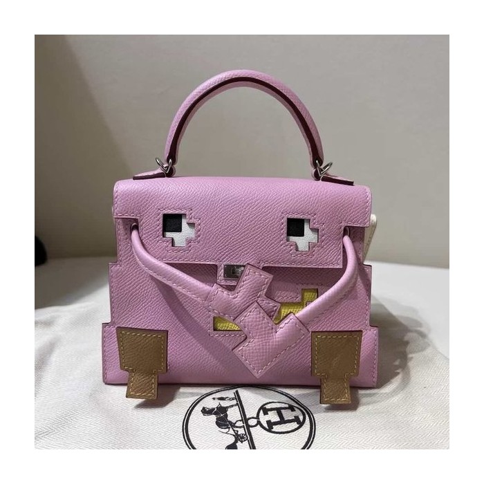 • Hermès Kelly Doll Quelle Idole Rose Confetti Epsom with Palladium Hardware