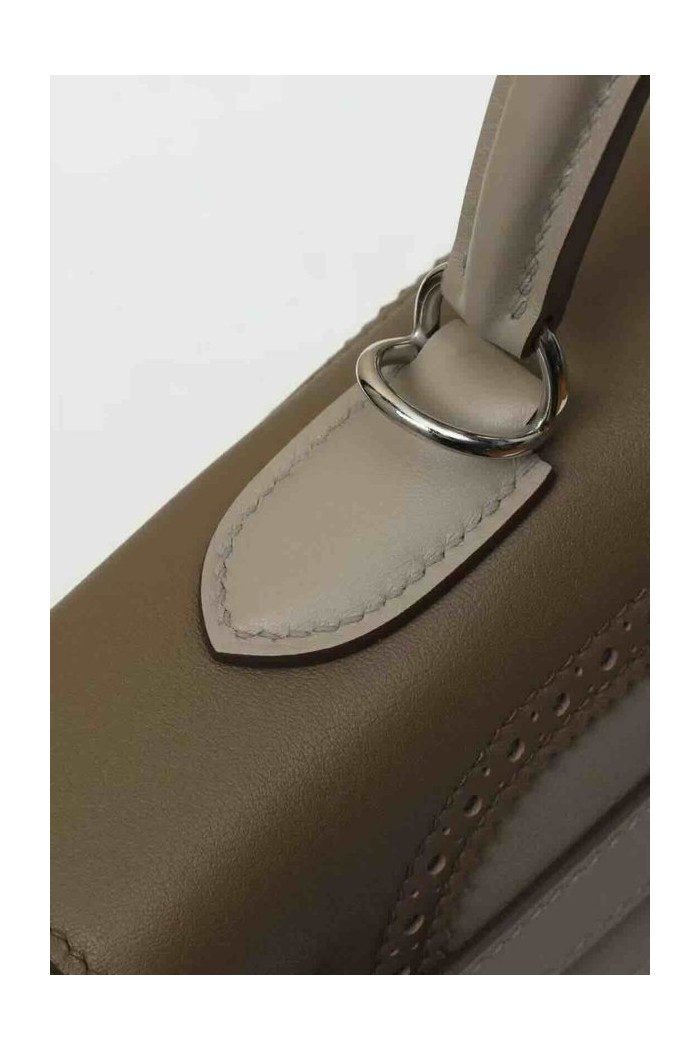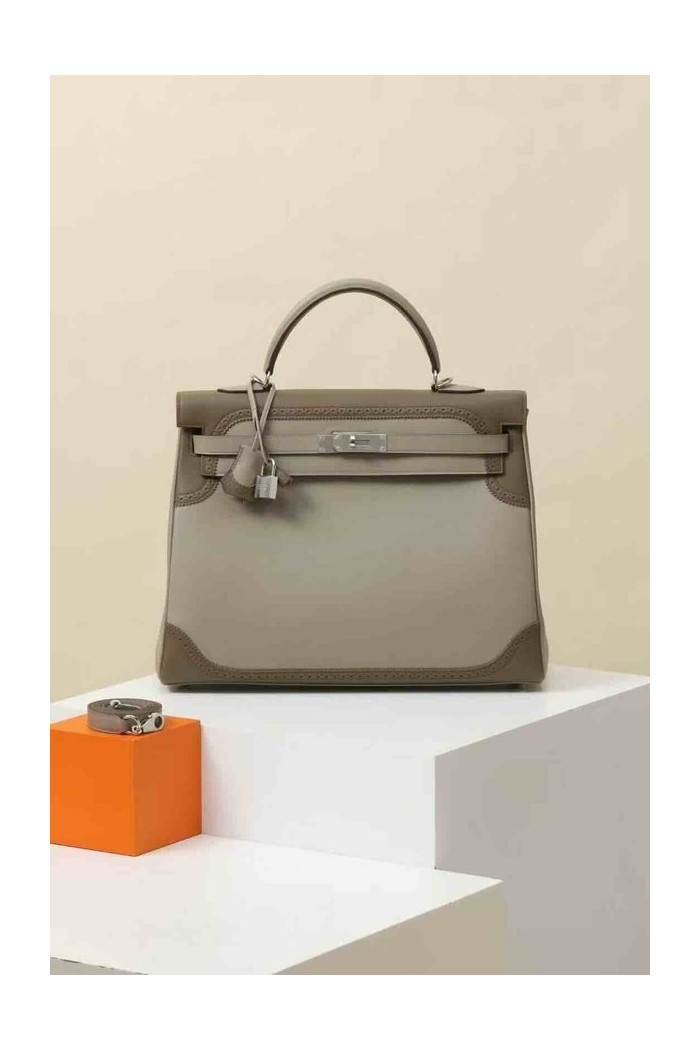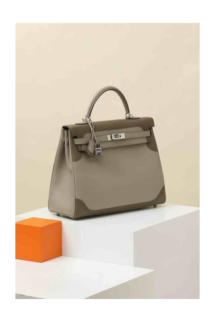 • Hermès Kelly 35 Ghillies Gris Meyer / Etoupe Swift x Palladium Hardware