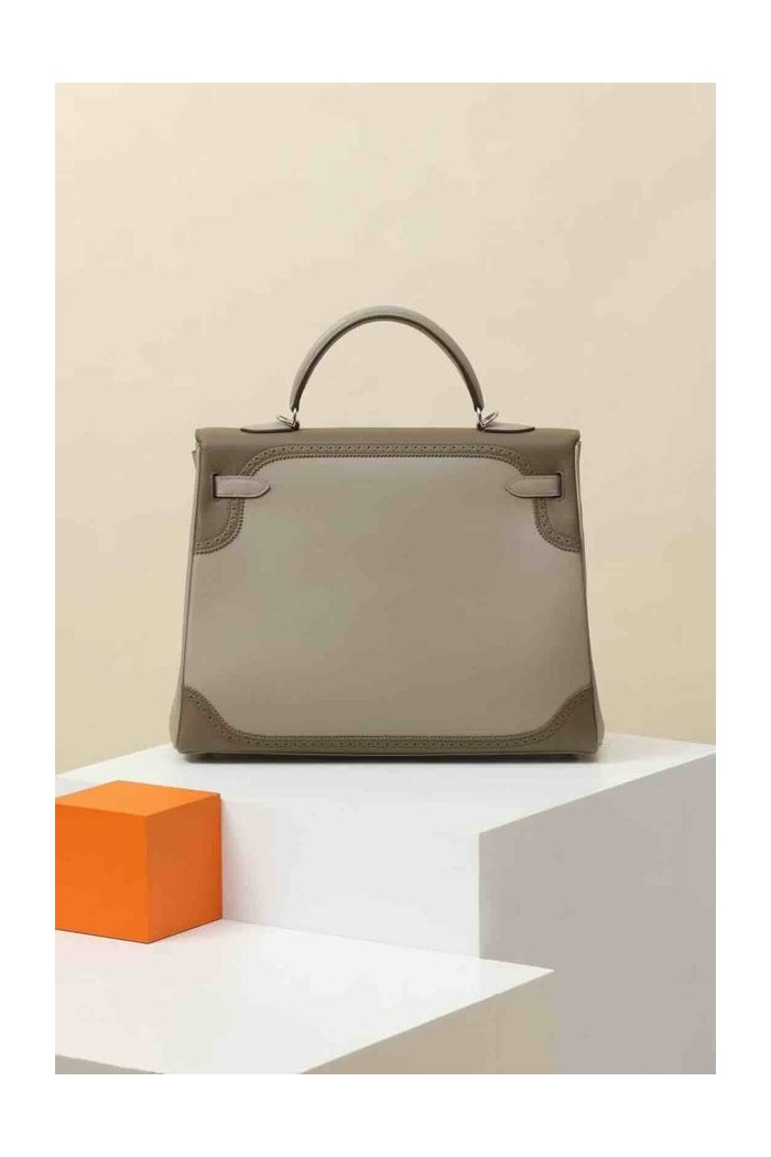 Hermès Kelly 35 Ghillies Gris Meyer / Etoupe Swift x Palladium Hardware > Ghillies