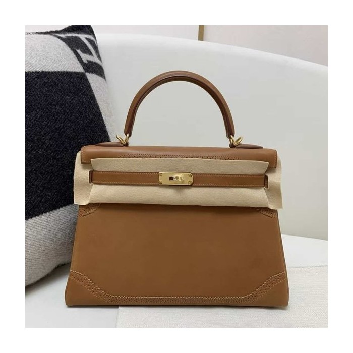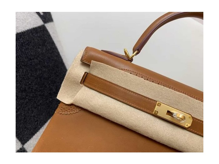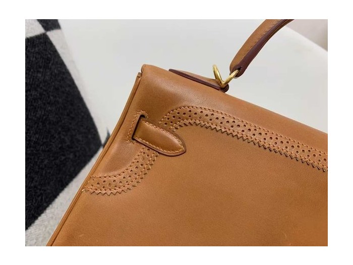 Hermès Kelly 28 Lace Saddle Gold Brown x Gold Hardware