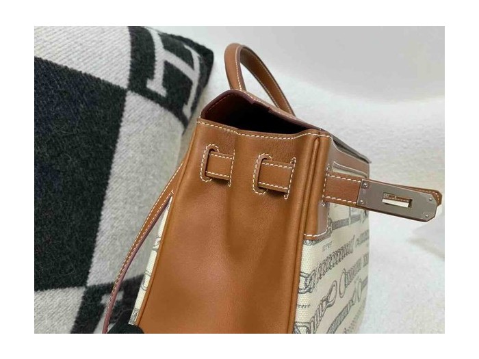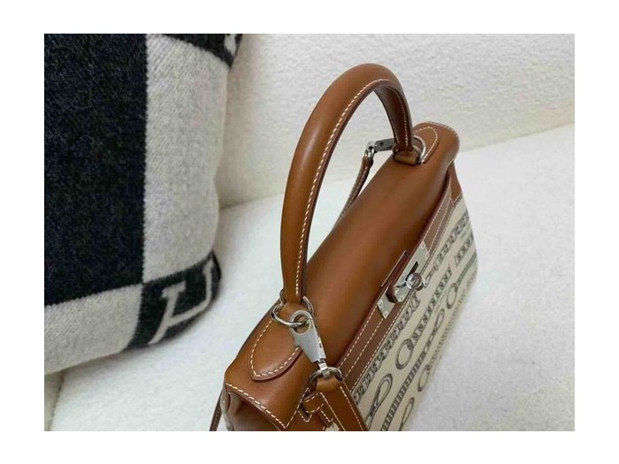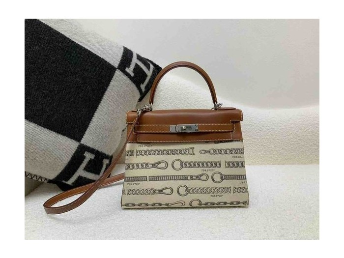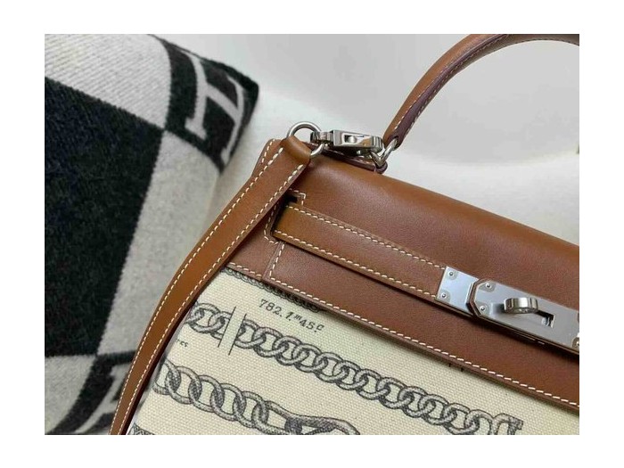 Hermès KELLY 28 TOILE DE CAMP DÉCHAÎNÉE & FAUVE BARÉNIA RETOURNÉ PALLADIUM HARDWARE