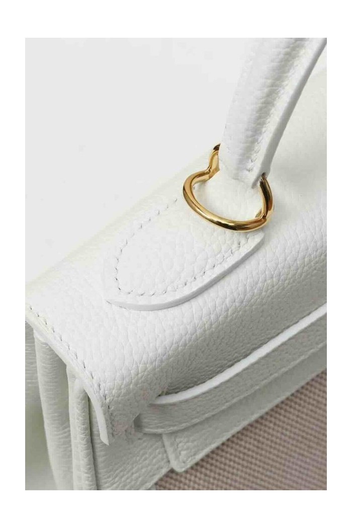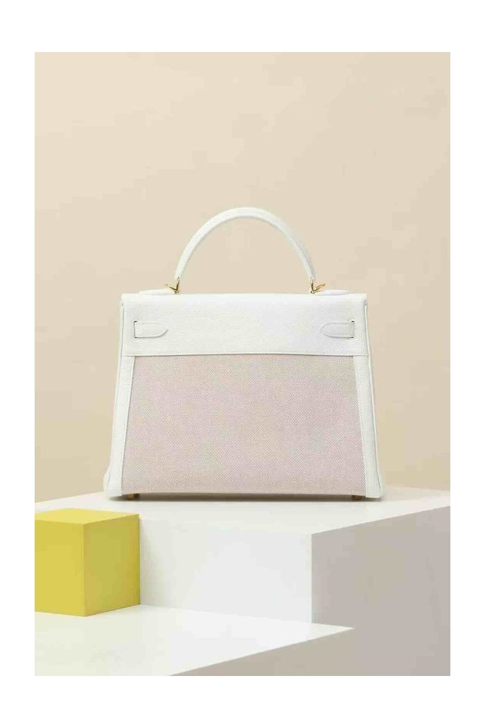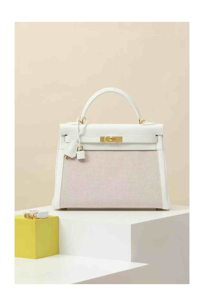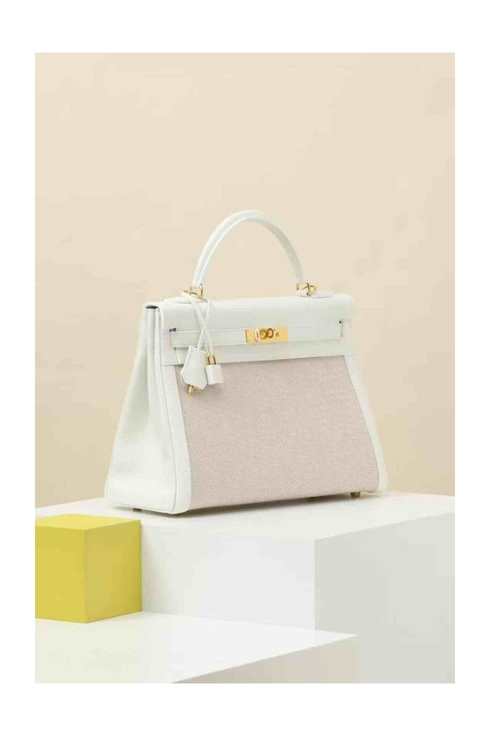 Hermès Kelly 28 Toile Canvas / Blanc Écru Epsom x Gold Hardware