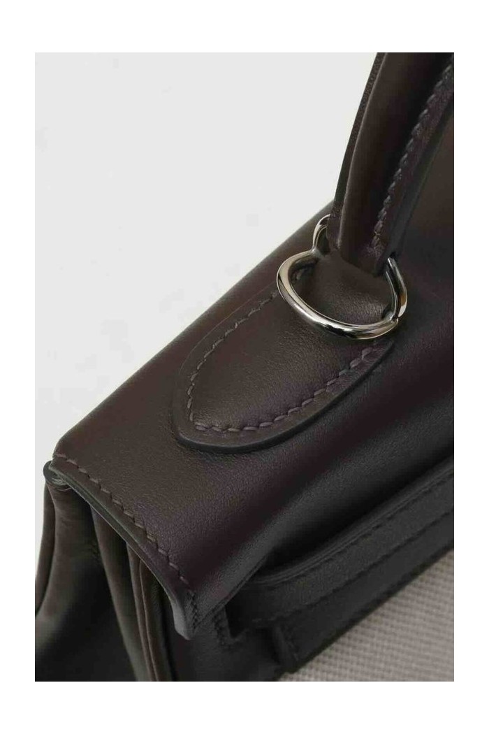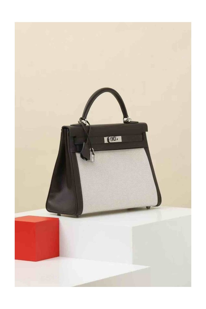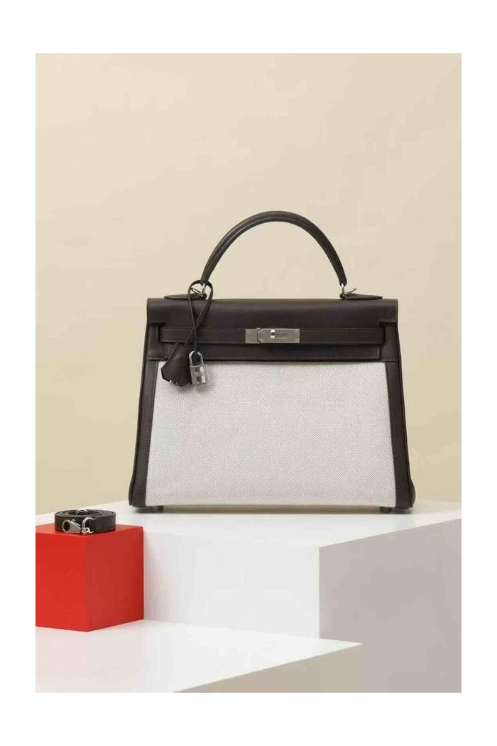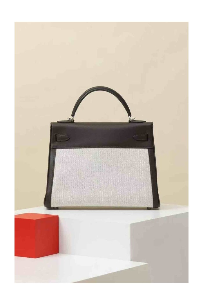Hermès Kelly 32 Toile Canvas Écru / Ébène Swift x Palladium Hardware > Canvas