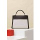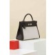 • Hermès Kelly 32 Toile Canvas Écru / Ébène Swift x Palladium Hardware
