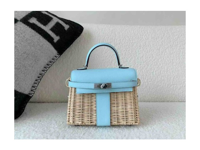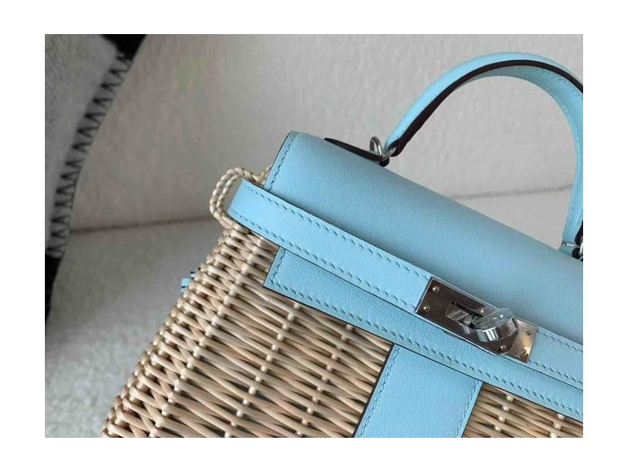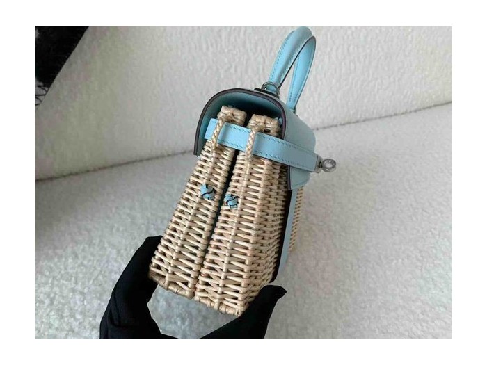 Hermès Mini Kelly Picnic Swift & Wicker Bleu Brume x Palladium Hardware