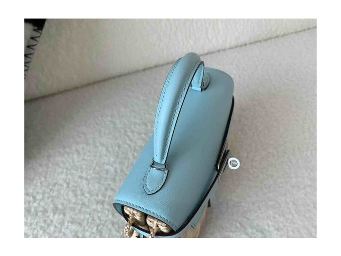 • Hermès Mini Kelly Picnic Swift & Wicker Bleu Brume x Palladium Hardware