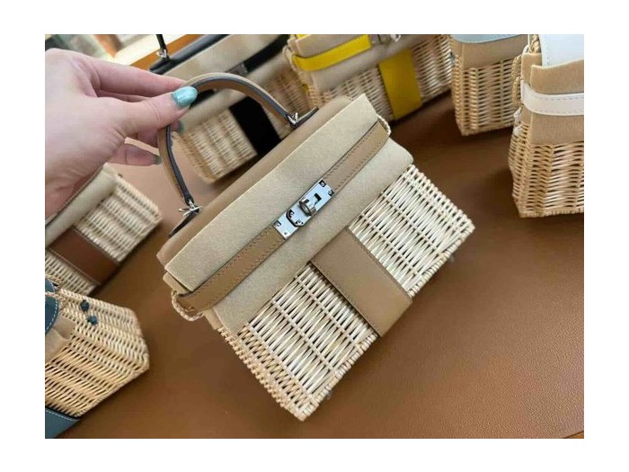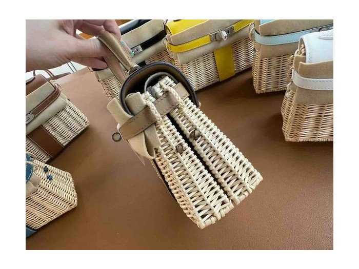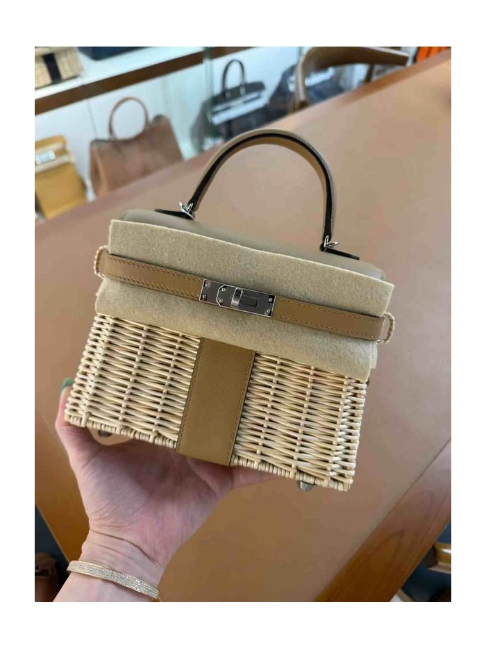 • Hermès Mini Kelly Picnic Wicker Chai x Palladium Hardware