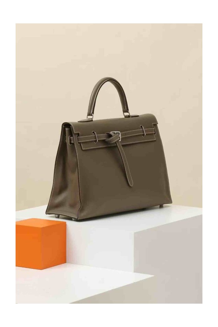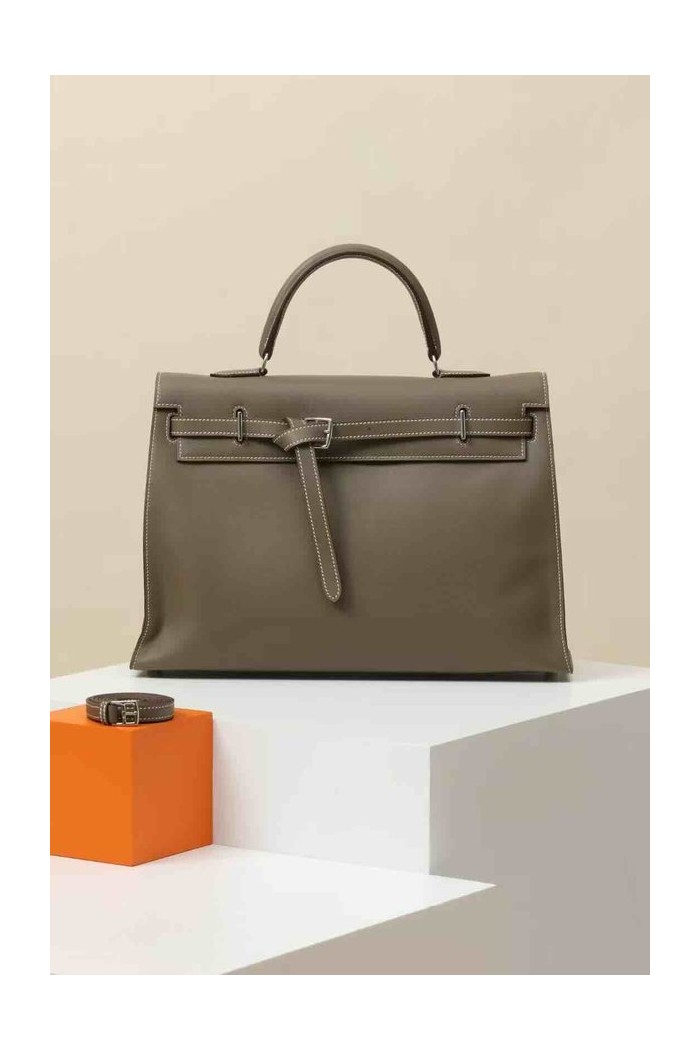 Hermès Kelly35 Swift Etoupe x Palladium Hardware