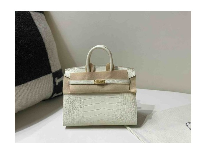 • Hermès Birkin 20 Matte Alligator Craie x Gold Hardware
