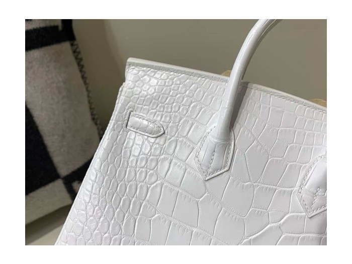 Hermès Birkin 25 Matte Alligator Mississippiensis, White, Palladium Hardware > Birkin