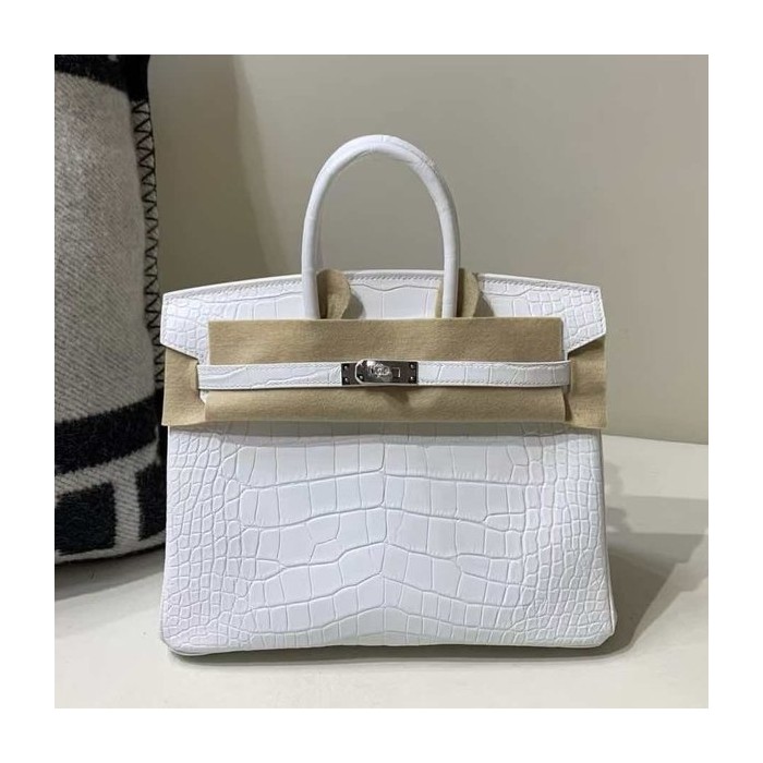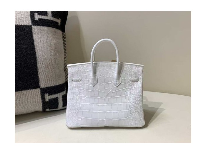 • Hermès Birkin 25 Matte Alligator Mississippiensis, White, Palladium Hardware