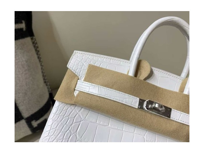 Hermès Birkin 25 Matte Alligator Mississippiensis, White, Palladium Hardware