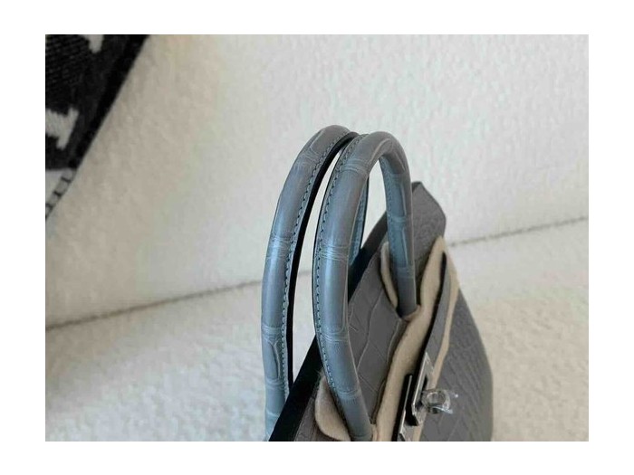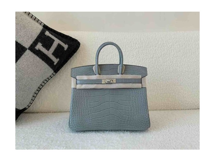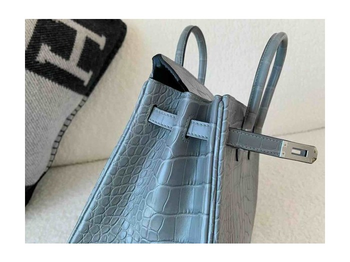 • Hermès Birkin 25 Matte Alligator Mississippiensis Gris Perle x Palladium Hardware
