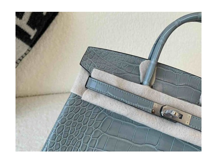 Hermès Birkin 25 Matte Alligator Mississippiensis Gris Perle x Palladium Hardware > Birkin