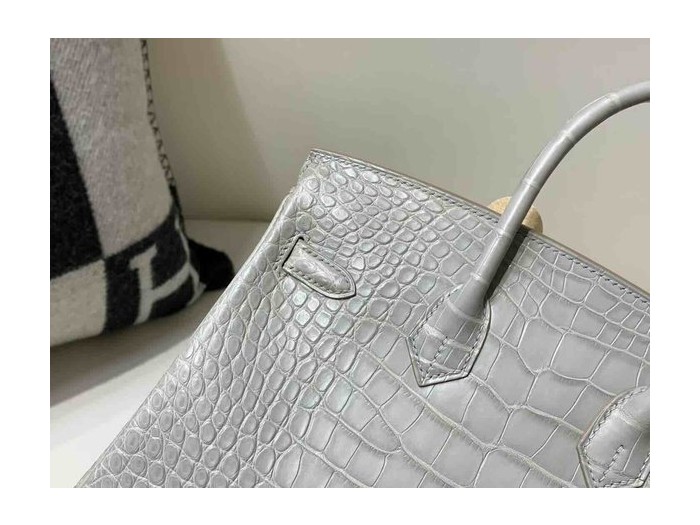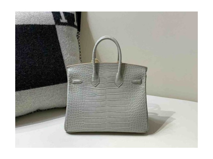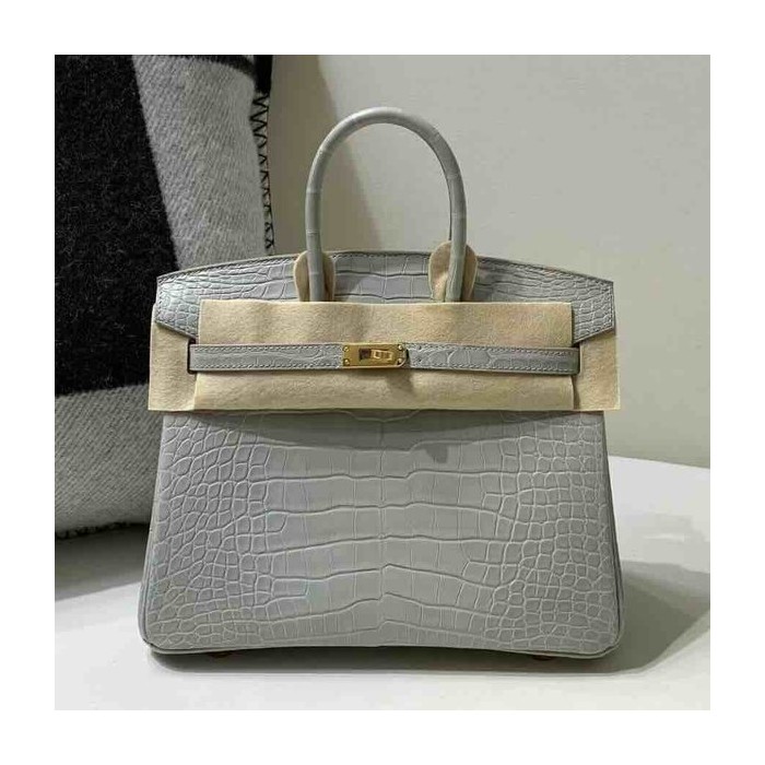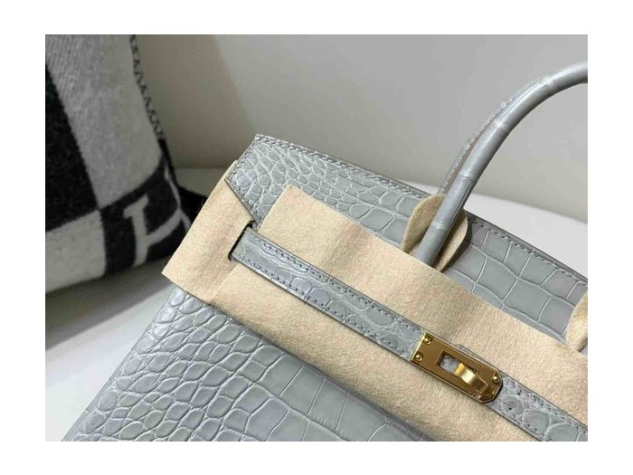 • Hermès Birkin 25 Alligator Matte Gris Perle (80 Pearl Grey) x Gold Hardware