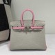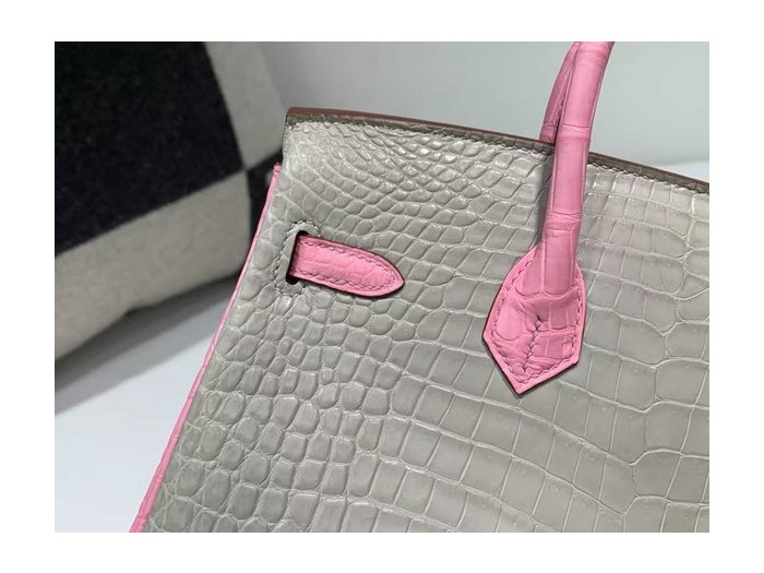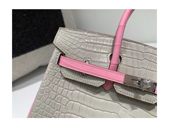 Hermès Birkin 25 Gris Perle and Rose Sakura Matte Alligator x palladium hardware