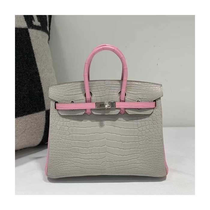 Hermès Birkin 25 Gris Perle and Rose Sakura Matte Alligator x palladium hardware > Birkin
