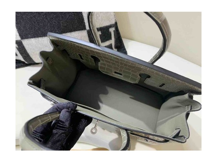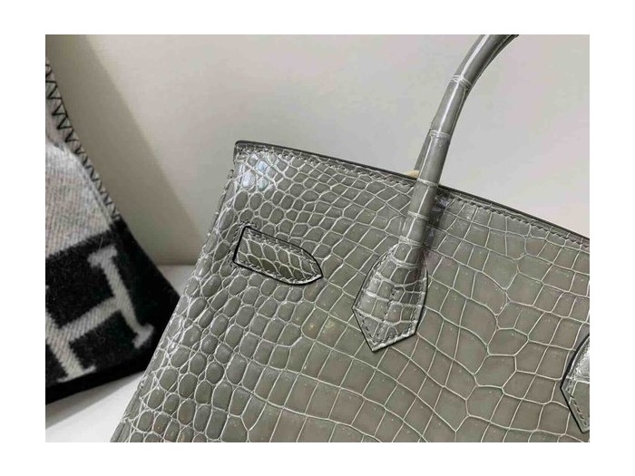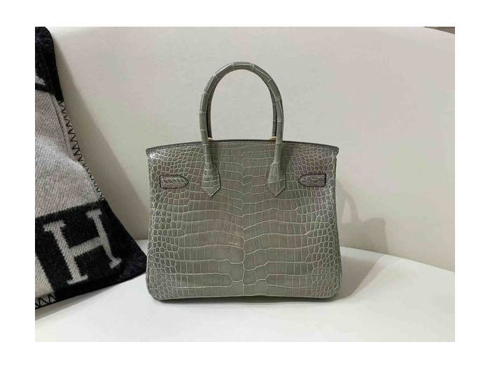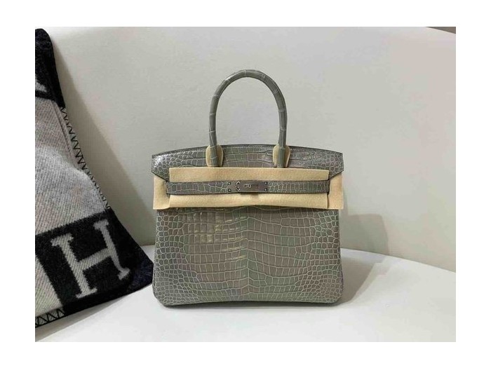 • Hermès Birkin 30 Shiny Porosus Crocodile Gris Tourterelle x Palladium Hardware