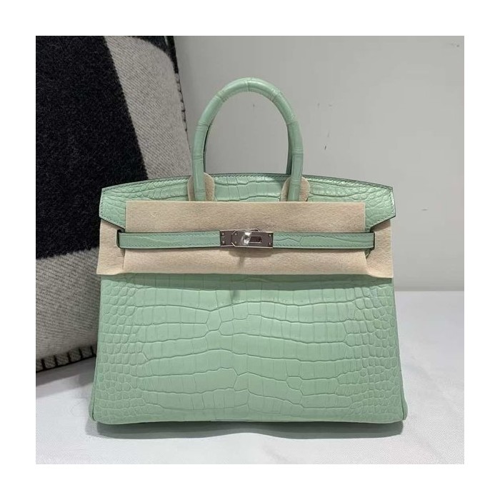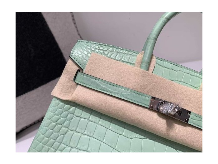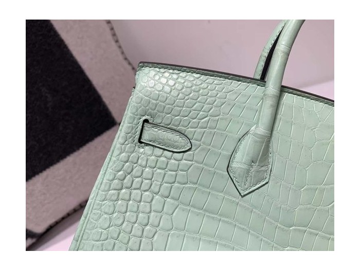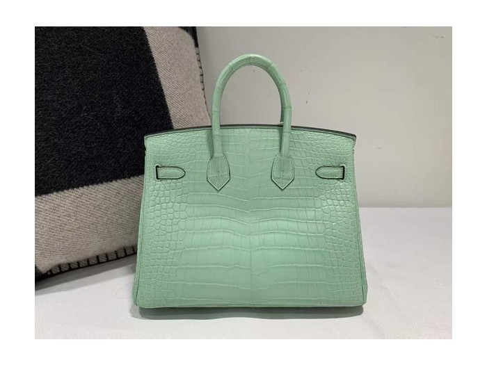 • Hermès Birkin 25 Sellier Vert d’Eau Crocodile x Palladium Hardware