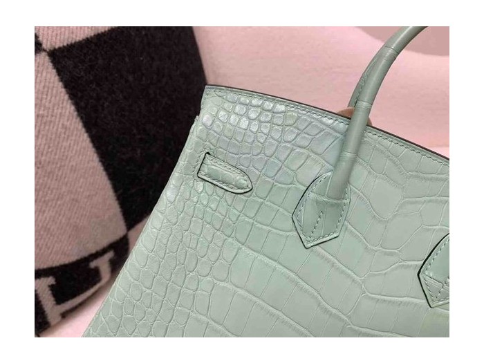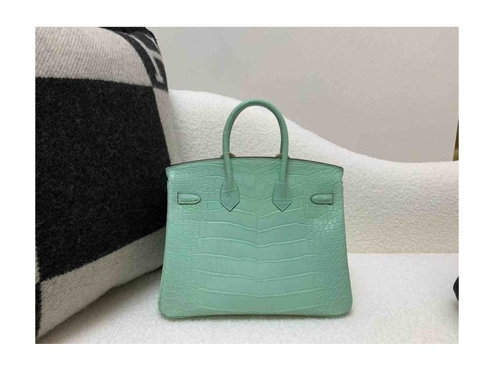 • Hermès Birkin 25 Alligator Matte Menthe (6U Mint Green) x Gold Hardware