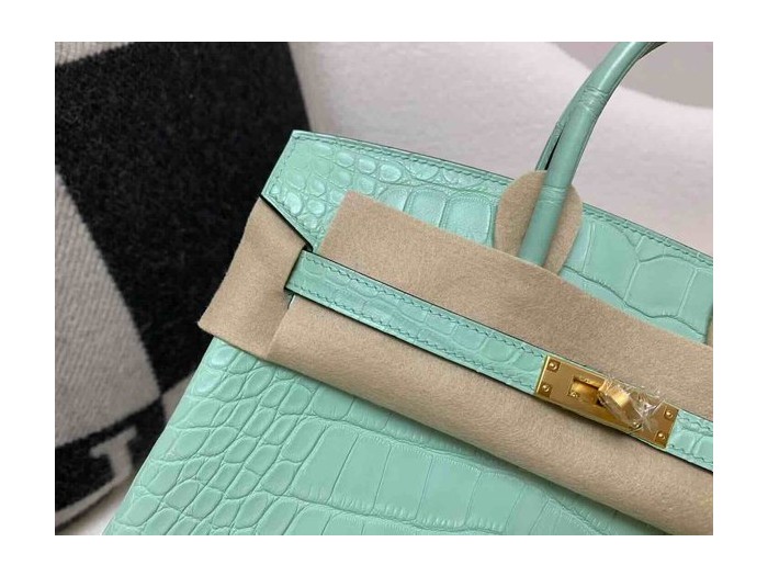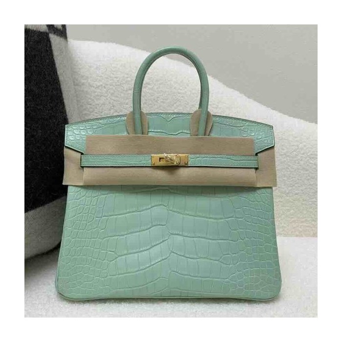 Hermès Birkin 25 Alligator Matte Menthe (6U Mint Green) x Gold Hardware