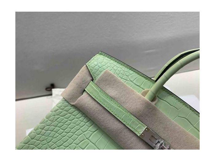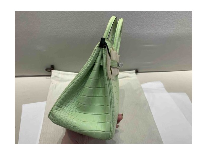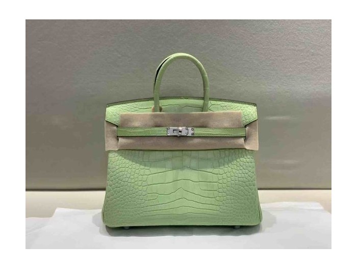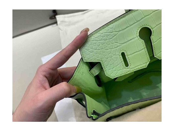 • Hermès Birkin 25 Matte Alligator Young Green x Palladium Hardware