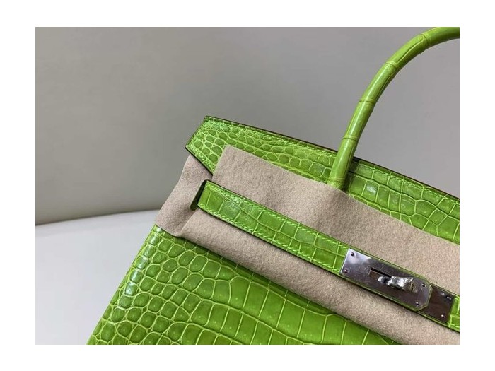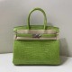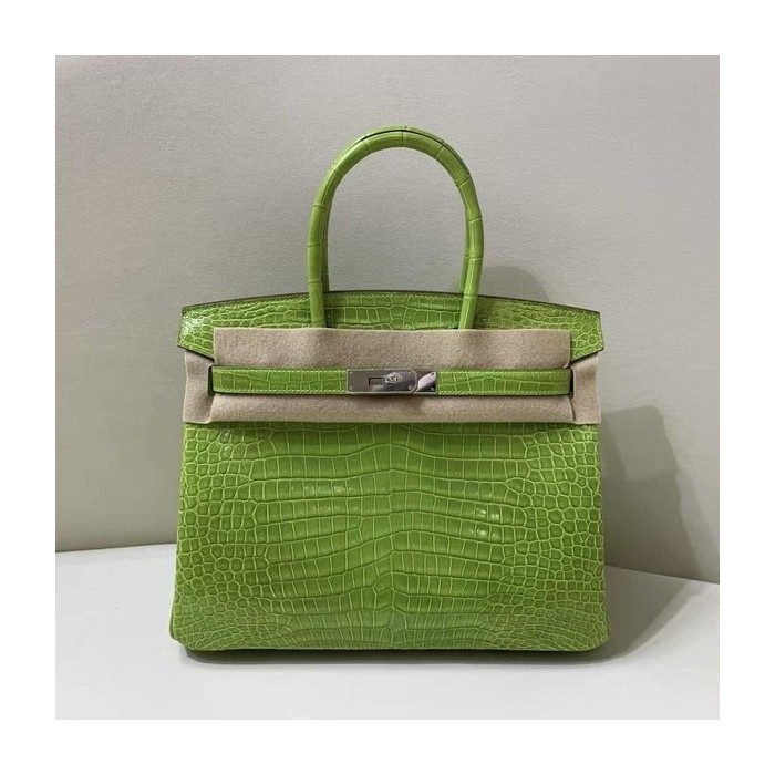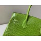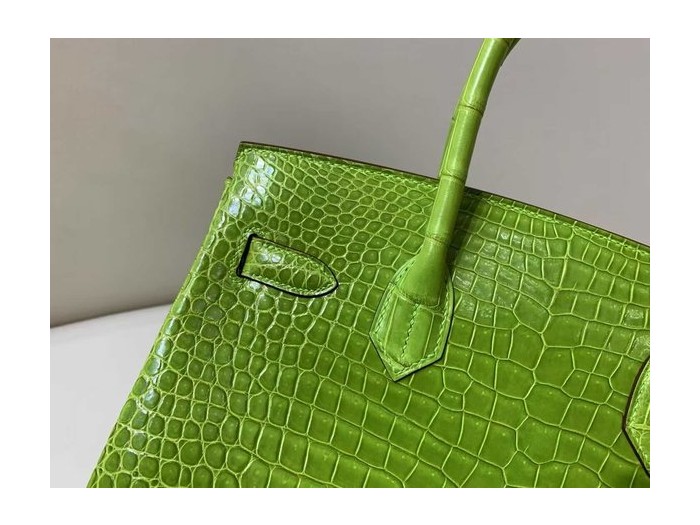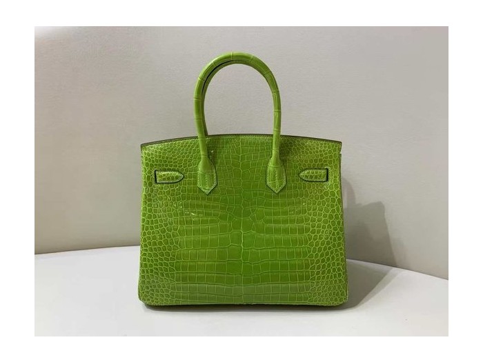 • Hermès Birkin 30 Shiny Porosus Crocodile Apple Green x Palladium Hardware