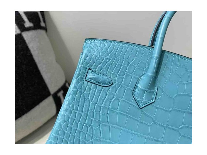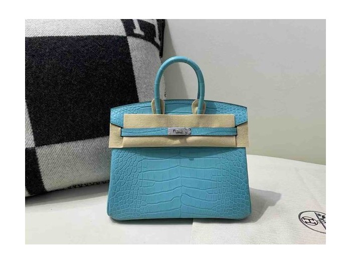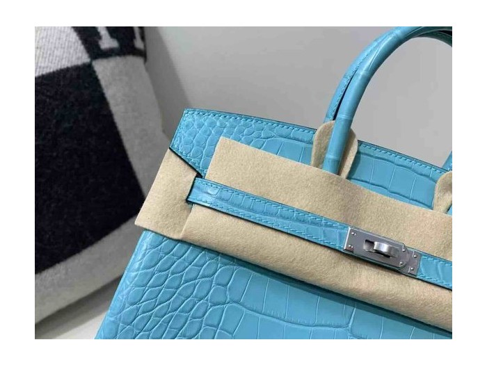 • Hermès Birkin 25 Alligator Matte Blue Celeste x Palladium Hardware