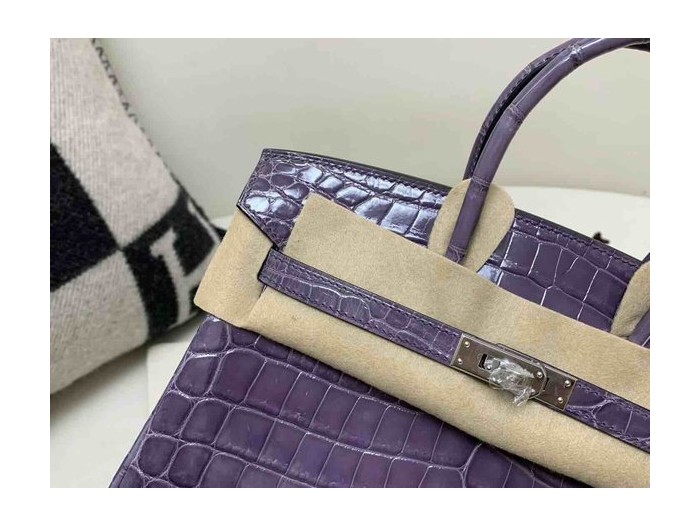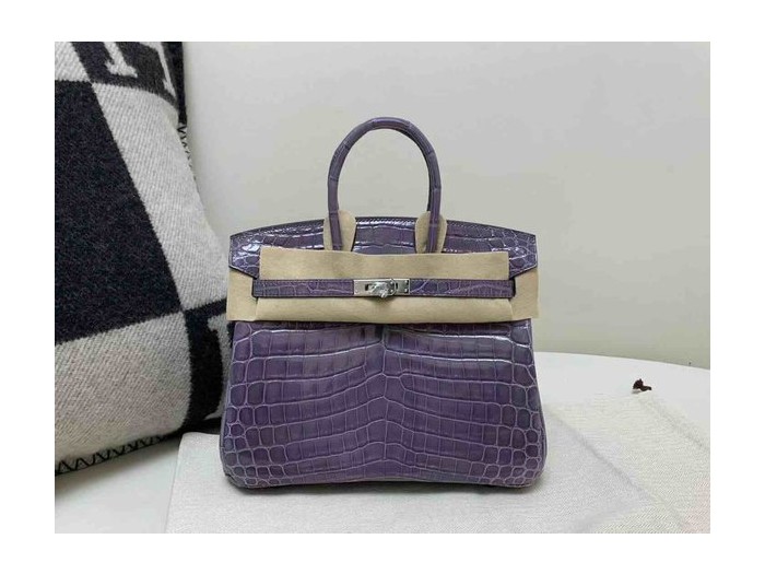 • Hermès Birkin 25 Shiny Niloticus Crocodile Bleu Électrique x Palladium Hardware