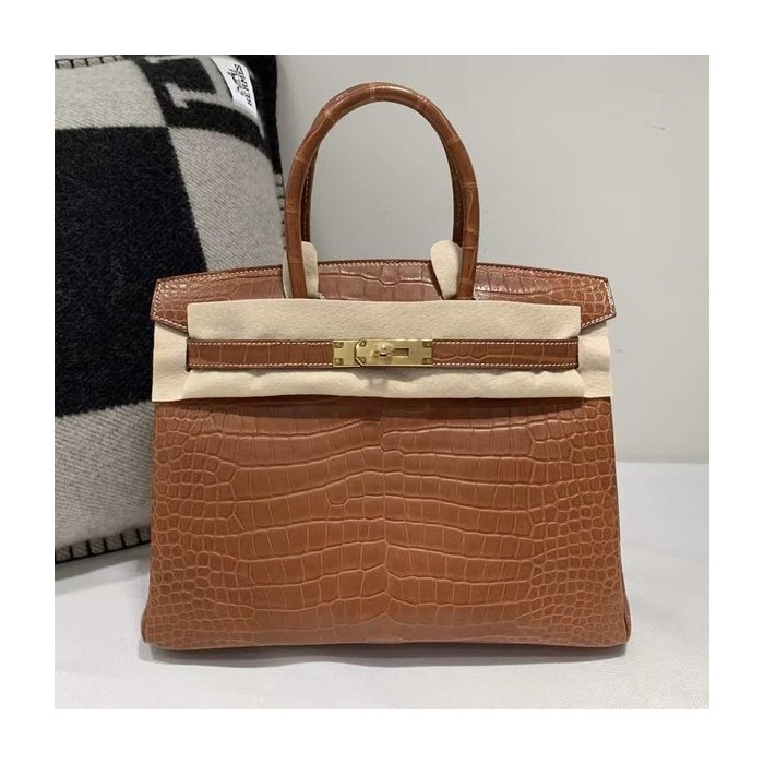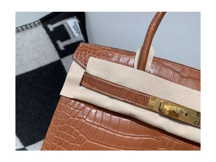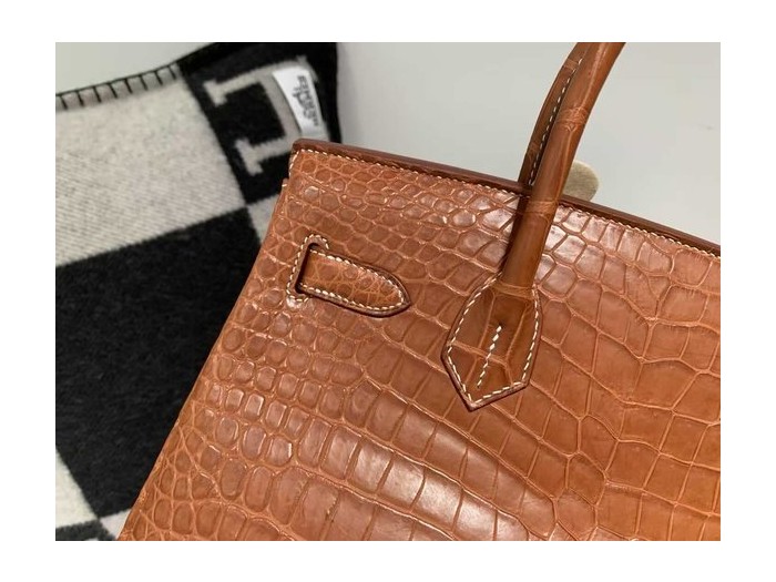Hermès Birkin 30 Fauve Barenia Matte Alligator x Gold Hardware
