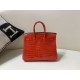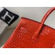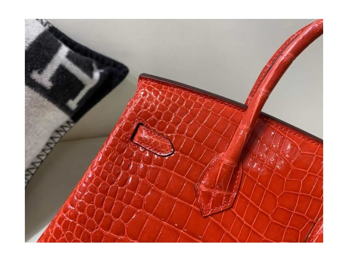 Hermès Birkin 25 Shiny Porosus Crocodile Ferrari Red x Gold Hardware