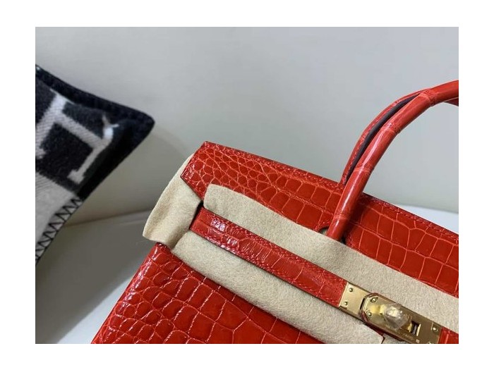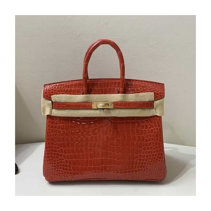 Hermès Birkin 25 Shiny Porosus Crocodile Ferrari Red x Gold Hardware > Birkin