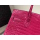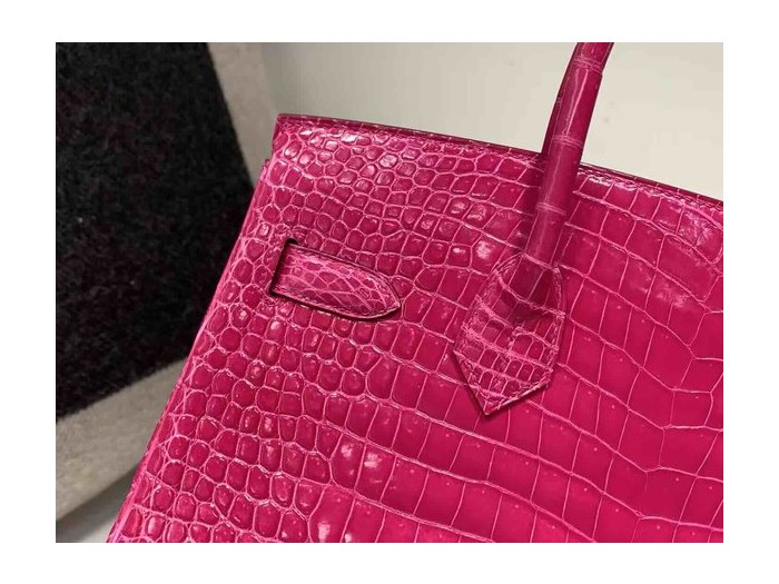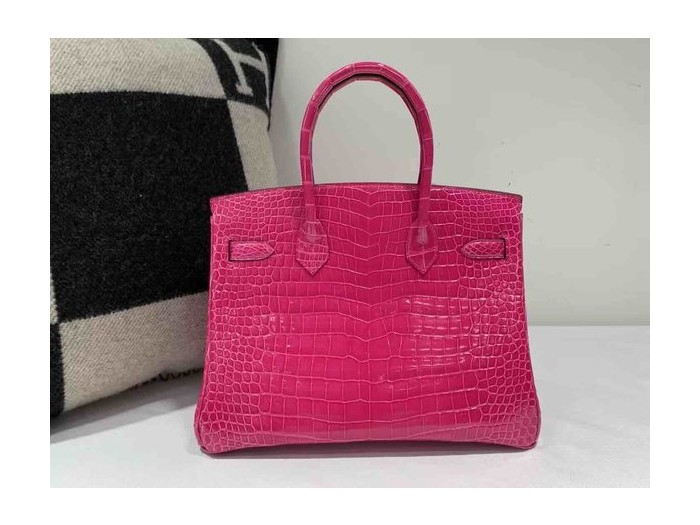 • Hermès Birkin 30 Shiny Alligator Rose Shocking x Gold Hardware