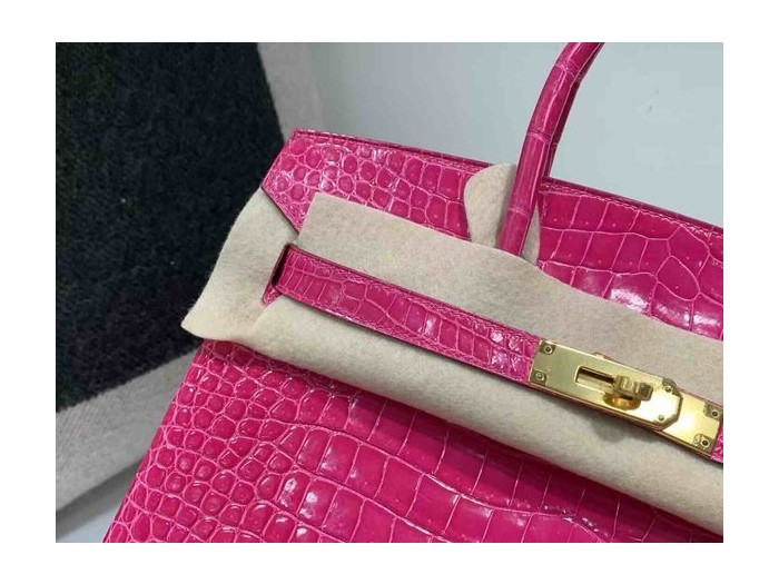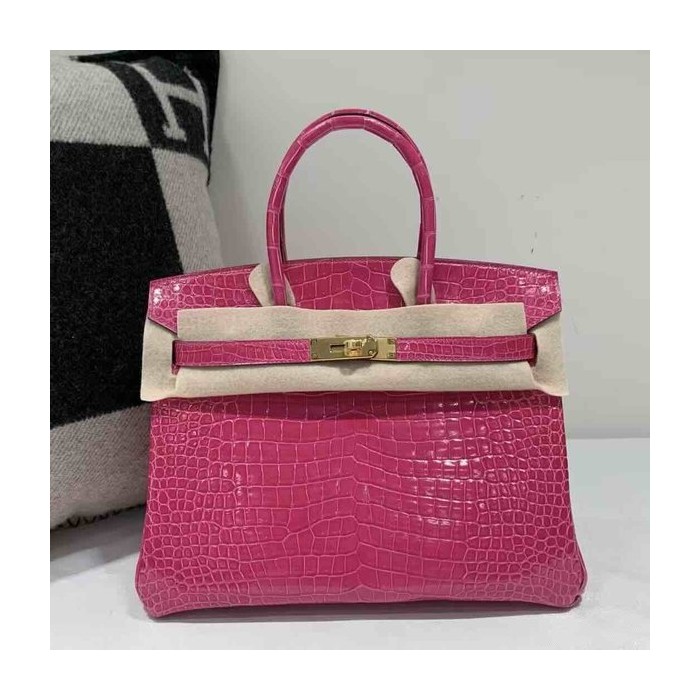 Hermès Birkin 30 Shiny Alligator Rose Shocking x Gold Hardware