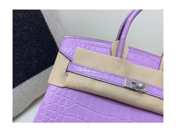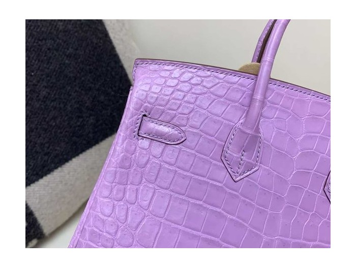 • Hermès Birkin 30 Crocodile Lavender Purple x Palladium Hardware
